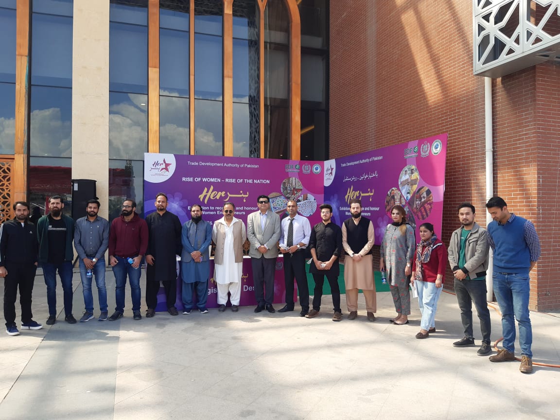 Women’s empowerment is an essential component for growth in developing nations like Pakistan for lifting millions of families out of the poverty cycle. The Ministry of Commerce and Trade Development Authority of Pakistan (TDAP) organized empowering women entrepreneurs exhibition ‘Her Hunar’. It was held on 4th & 5th March 2023 at the Pakistan-China friendship center Islamabad. Students of EMBA attended exhibition activities and participated in training workshops. This exhibition provided a learning and networking platform for EMBA students.