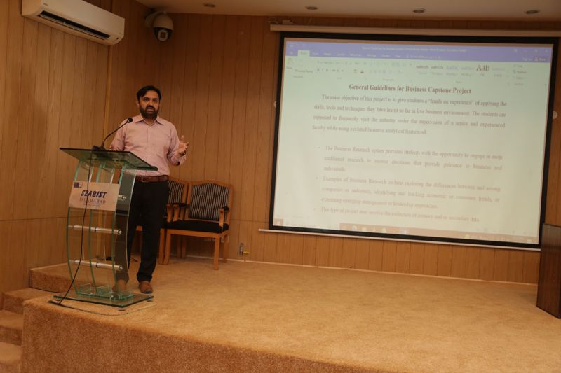 The resource persons Assoc. Prof. Dr. Fuwad Bashir and Dr. Muhammad Saeed Shahbaz explained to the supervisors the essential steps of an ideal Capstone Project. They also shed light on the ideal flow of the capstone projects and briefly explained the guidelines as well.