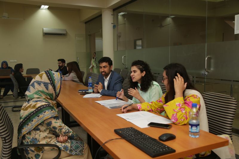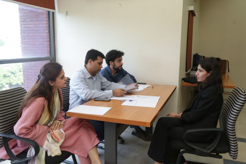 Dr. Sundas Azeem briefed both classes separately concerning key points as members of an interview panel, as well as an interviewee. Each interviewee, interviewed by a panel of 3 members was also evaluated on separate interview evaluation sheets, which also enabled suggestions for improving body language, technical knowledge, general communication skills, etc.