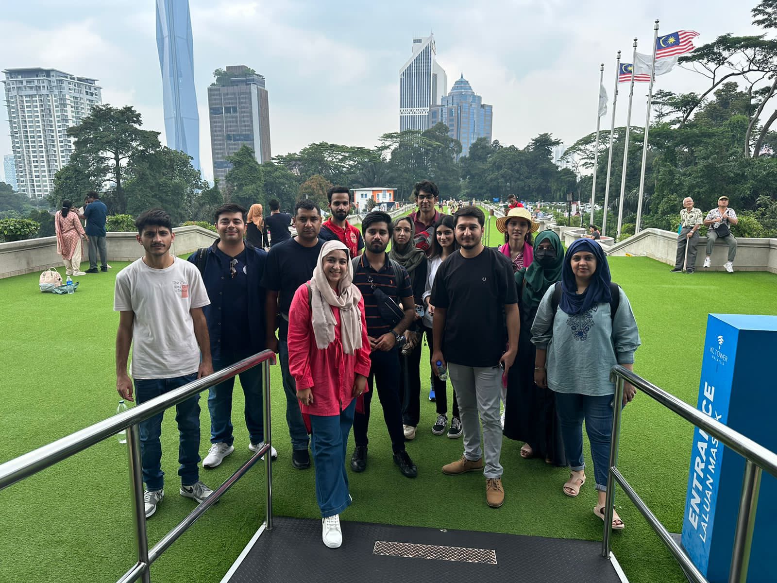 SZABIST University, Islamabad Campus arranged a recreational learning trip to Malaysia for their students for practical learning. During phase 1, students got the opportunity to explore Malaysian development by visiting various places such as their seven types of railway infrastructure in Kuala Lumpur, high-rises, Petronas tower, and especially KL tower which is a 6-storey, 421-metre-tall telecommunication tower in Kuala Lumpur, Malaysia. It is the world’s 7th tallest tower and Malaysia and Southeast Asia’s second tallest tower. Its construction was completed in 1994. Additionally, students also explored local food and culture by visiting various local bazaars.