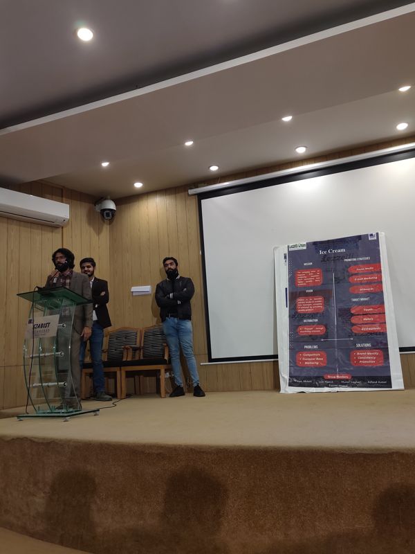 Under the supervision of Dr. Shazia Akhtar (program manager MBA and chief organizer of the event), Dr. Zoya Wajid Satti and Dr. Arusa Khalid students of MBA analyzed the international brands’ strategies. International business strategy refers to plans that guide commercial transactions taking place between entities in different countries. Global Strategy is when an organization treats the world as one market and one source of supply with little local variation, which they believe maximizes global efficiency. The students examined different brands, identified their problems, and recommended solutions to these problems. There were two judges Dr. Saqib and Sir Danish to evaluate different groups. They appraised students’ presentations and gave valuable feedback to the students.