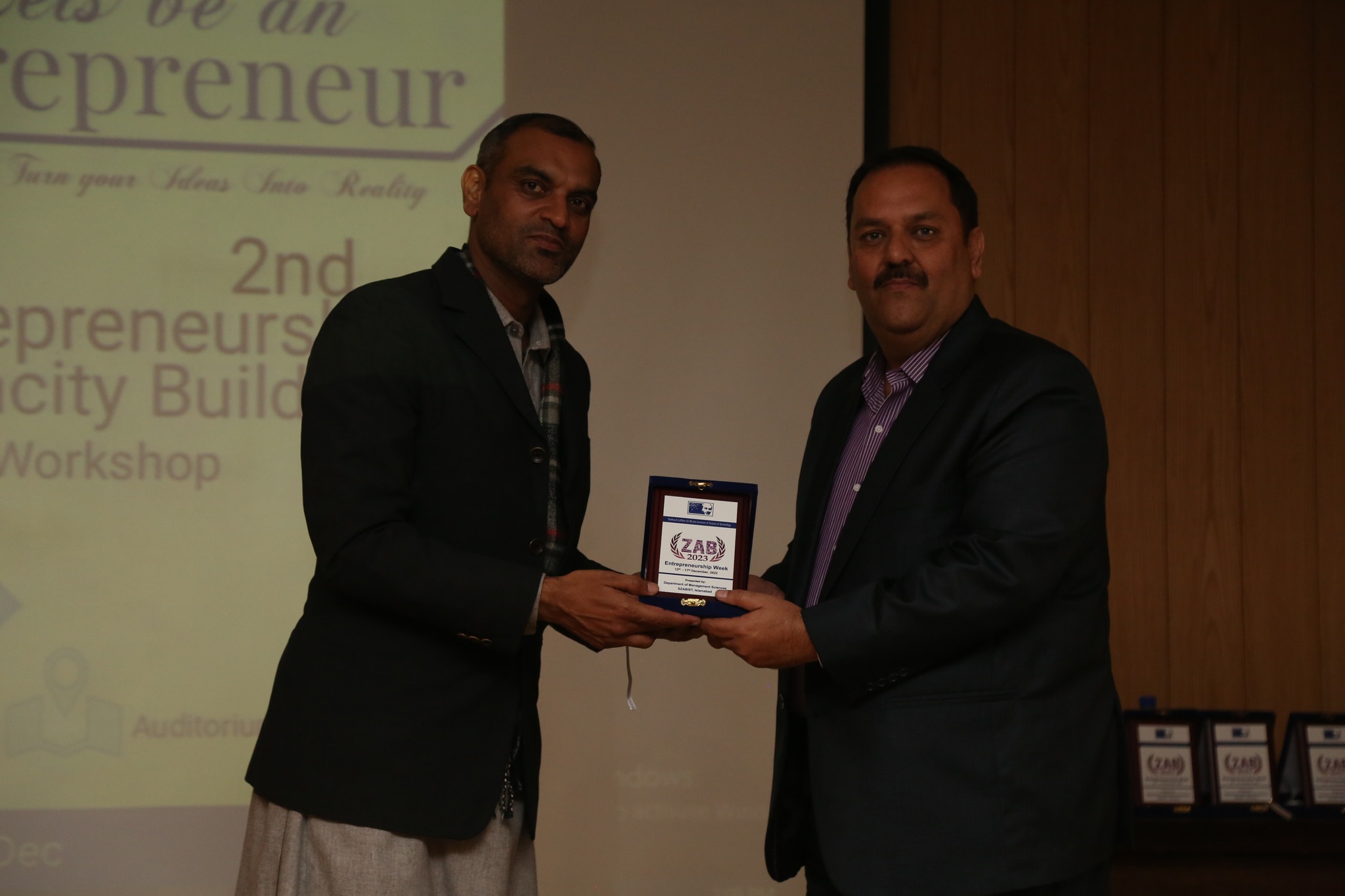 The Department of Management Sciences and the students of BBA under the ZAB Entrepreneurship Week, Fall 2022 organized a full-day workshop under the supervision of Mr. Shahid Jahangir Raja on Entrepreneurial Business Startups on 14th December 2022 at Szabist Islamabad Campus. The main purpose of the event was to enrich the students with the importance of Business Startups. Entrepreneurs from the private sector graced the event. They enlightened the students on how to start and manage business startups and independent ventures at an early stage. Dr. Muhammad Asif Khan (Associated Dean & HOD) Management Sciences concluded the session with a note of thanks.