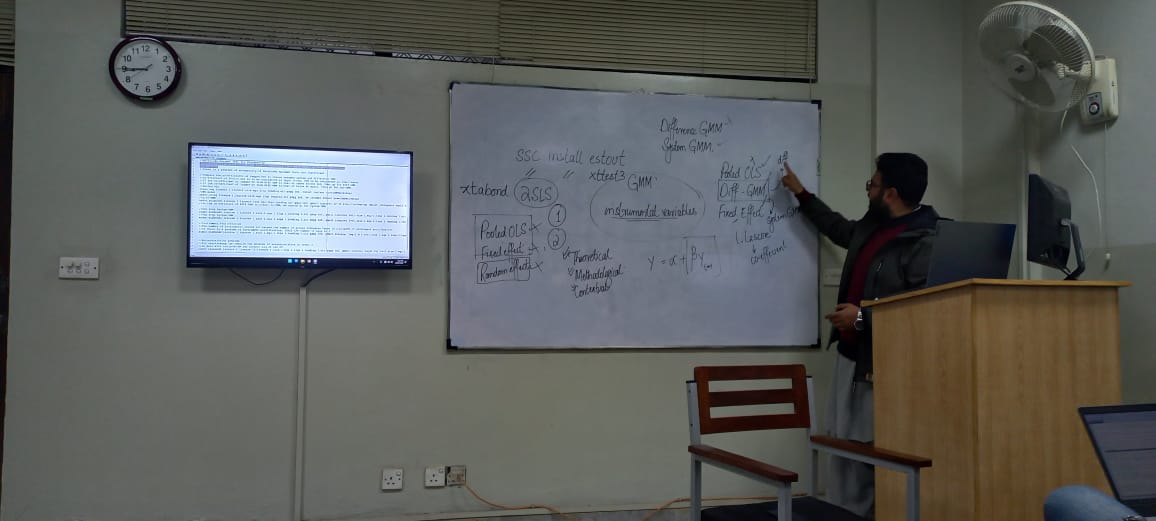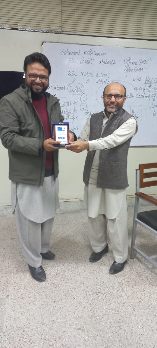 The workshop on Generalised methods of moments (GMM) using Stata helped the students to understand the application of the GMM model, and it familiarized the students with the interface of Stata. It also helps most students in their research thesis. Dr. Hassan Zada organized the event.
