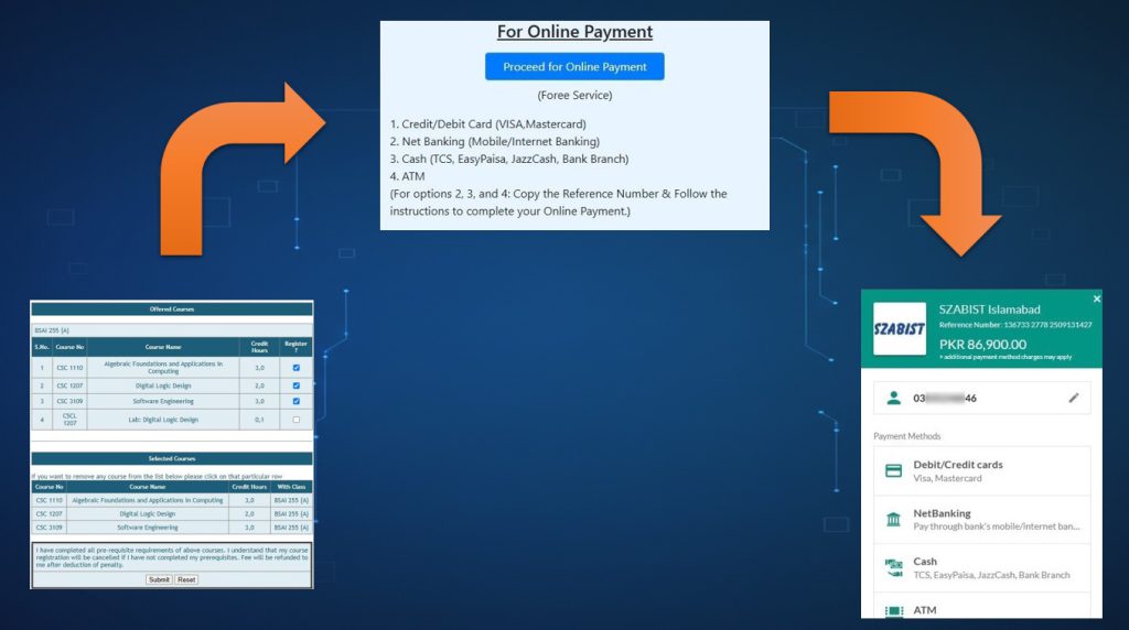 Regular / Continuing Students may process their fee payments through their respective Student Zabdesk Account after successful completion of the course registration process. The following payment options are available