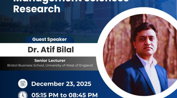 SZABIST University Islamabad is pleased to host an International Webinar on “Emerging Trends in Management Sciences Research” on December 23, 2025, from 5:15 PM to 8:45 PM via Google Meet. The session will feature Dr. Atif Bilal, Senior Lecturer at Bristol Business School, University of the West of England (UWE), as the guest speaker, with Mr. Amin Ur Rehman, PhD Scholar, serving as moderator. Designed primarily for PhD scholars and...Read More
